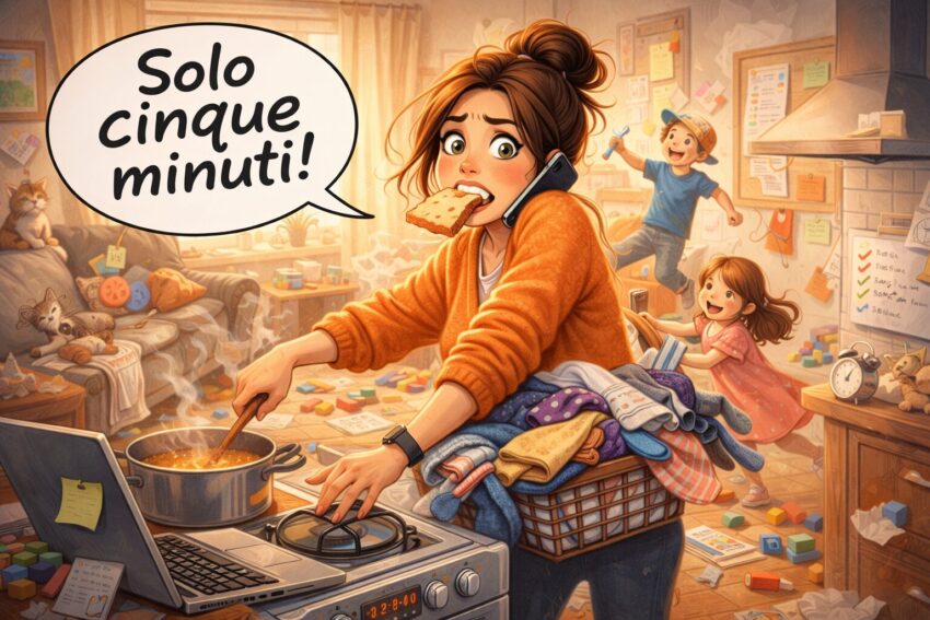 “Solo cinque minuti.” È una frase che dico con la stessa convinzione con cui si dice “tranquilli, ho tutto sotto controllo” mentre, contemporaneamente, ti cade la borsa, suona il telefono e qualcuno urla dalla stanza accanto: “Mammaaa!” “Solo cinque minuti” è la bugia più amata della vita adulta. Non una bugia cattiva: una bugia tenera,…